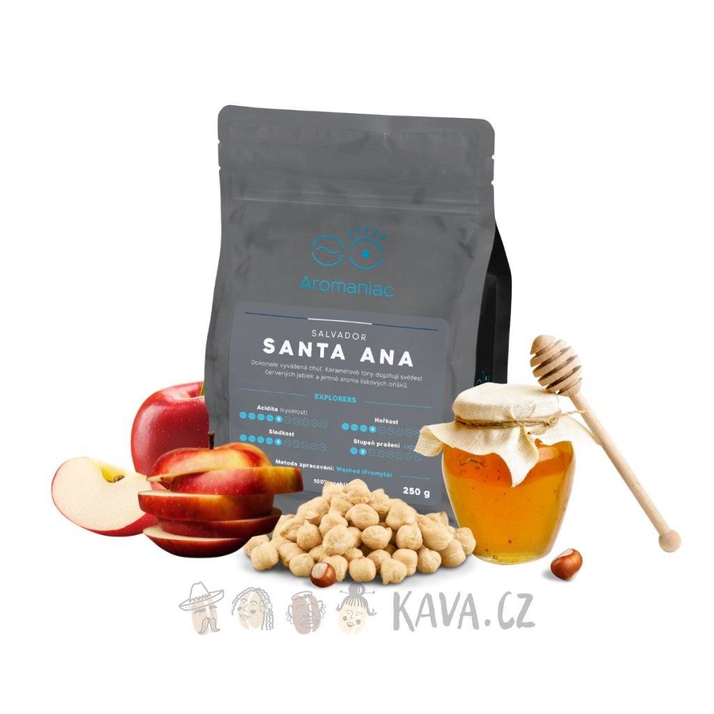 El Salvador Santa Ana sedne těm, kteří mají radši hořkou kávu, než kyselou. Má krémovější, ale ne příliš těžké tělo a ze začátku je hodně intezivně lískooříšková. Postupně v ní ucítíte ale i sladké tóny karamelu a zralých červených jablíček, které postupně přejdou do čokoládové dochuti. Doporučujeme ji vyzkoušet jako klasické espreso i s mlékem – vynikne v kapučínu i flatwhite!
