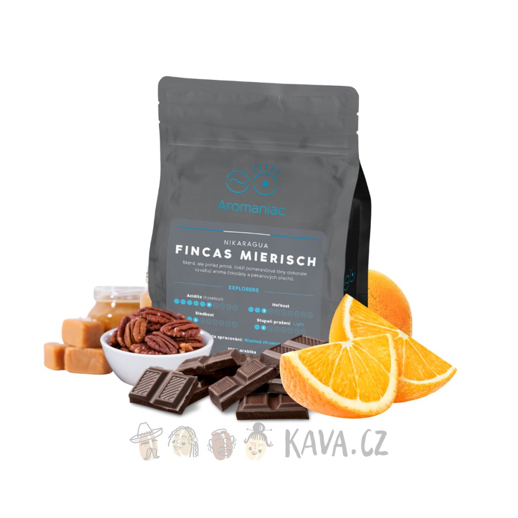 Finca Mierisch je naprosto typická Niakragua – vyvážená, lehce nahořklá, čokoládovo-oříšková káva se šmrncem pomerančů a sladkými tóny karamelu a třtinového cukru. Chvílemi vám může na jazyku přidat kyselá, ale nijak výrazně. Nejlépe chutná jako na klasické espreso, tlak extrakce zvýrazní její čokoládové tělo a rozvine chuť oříšků. Ve French pressu, nebo překapávači zase vynikne její ovocnost.
