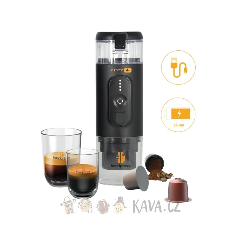 Handpresso E-presso Plus je inovativní cestovní kávovar navržený pro milovníky kvalitní kávy na cestách. Díky vestavěné Li-Ion baterii s kapacitou 2 900 mAh dokáže ohřát vodu a připravit bez potřeby externího napájení. Kávovar je kompatibilní s kapslemi Nespresso® i mletou kávou, což poskytuje flexibilitu při výběru oblíbeného nápoje. S objemem zásobníku na vodu 110 ml umožňuje přípravu espressa i espressa lungo. Na jedno nabití baterie zvládne připravit 3–4 kávy, přičemž plné nabití trvá přibližně 3 hodiny pomocí USB-C kabelu. Kompaktní rozměry a tichý provoz činí z tohoto kávovaru ideálního společníka na dovolené, nebo v kanceláři.