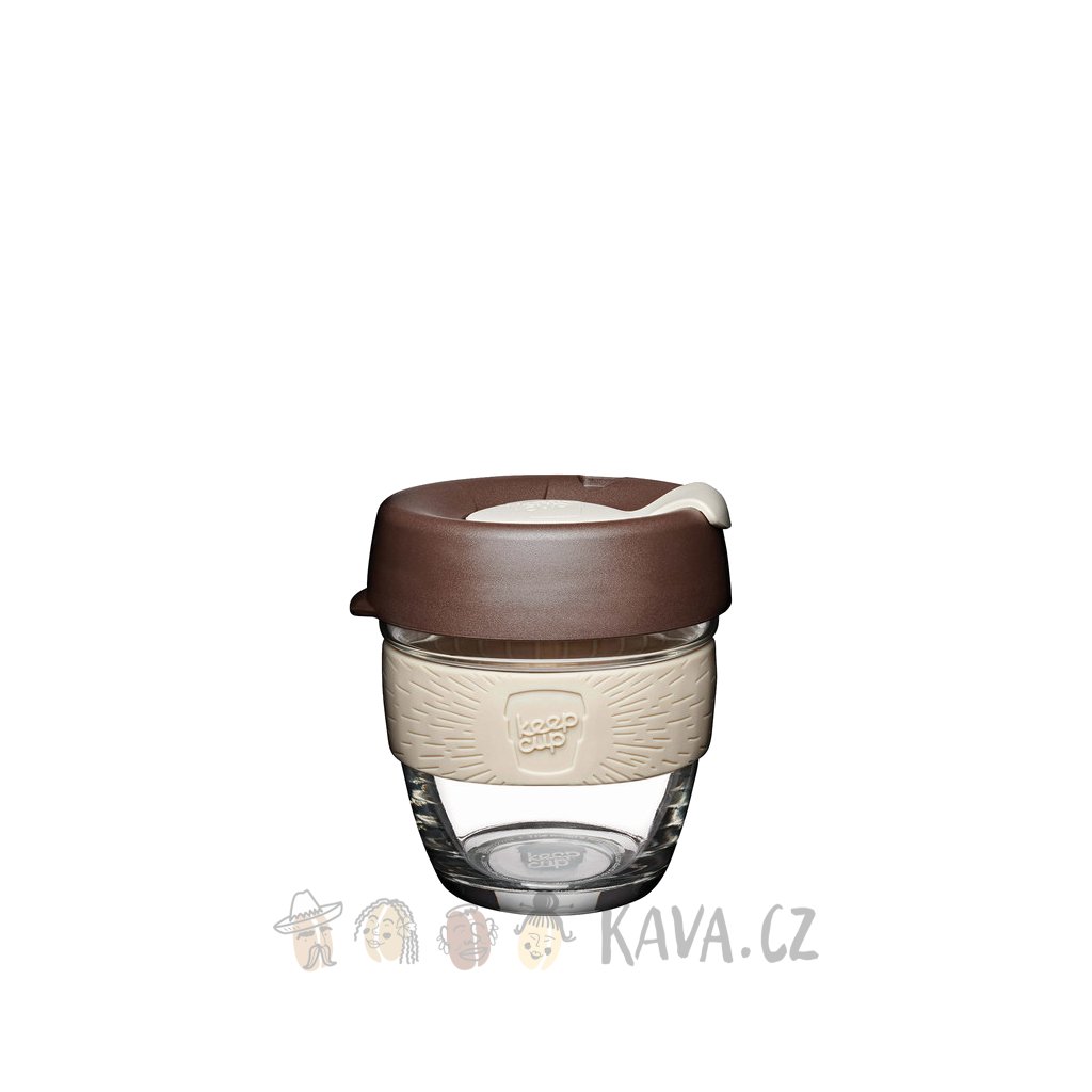 Skleněný kelímek pro vaši kávu s sebou z řady KeepCup BREW v barvách mléčné a bílé čokolády. Velikost S.