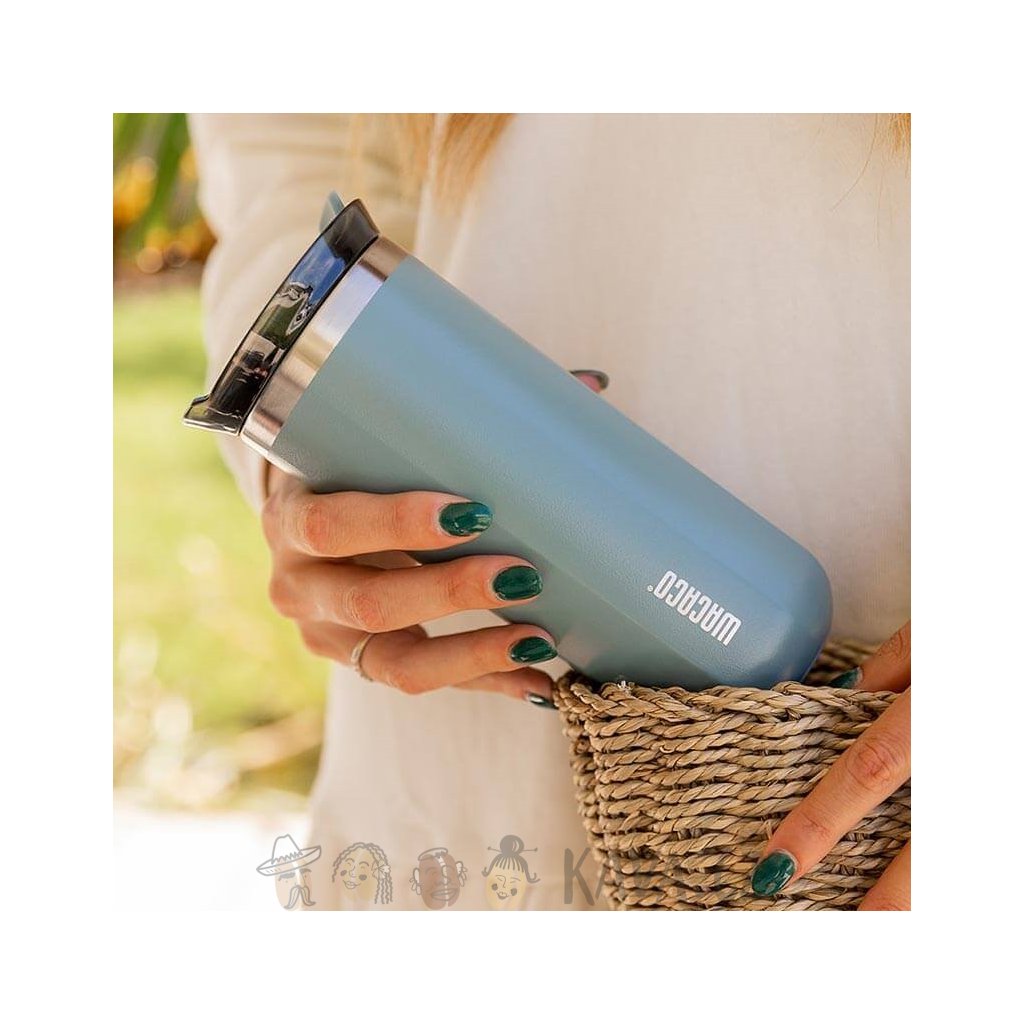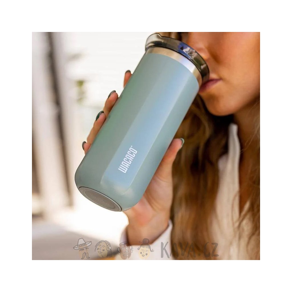 Největší cestovní termohrnek Wacaco z nerezové oceli s vakuovou izolací a šroubovacím uzávěrem.