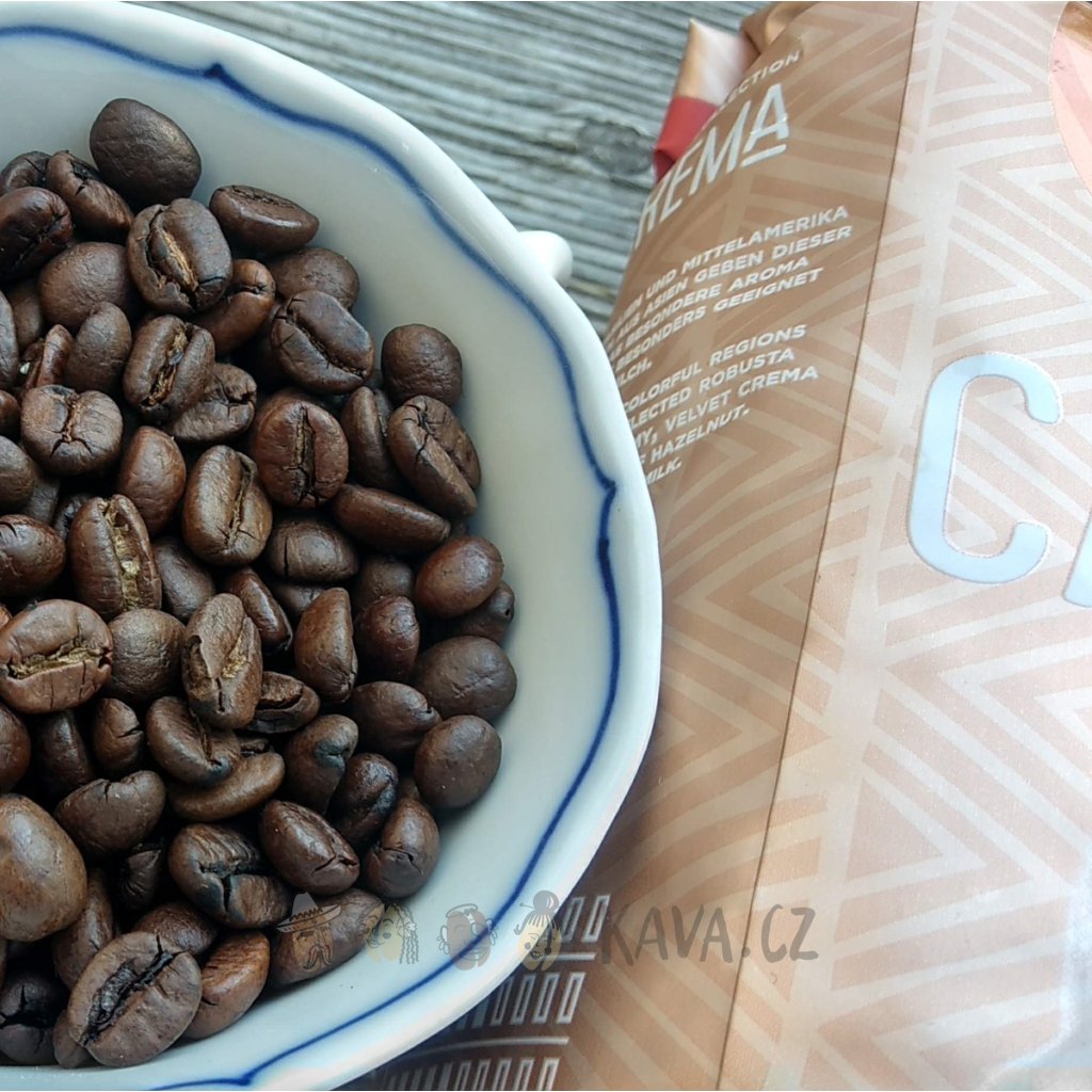 Káva s intenzivním aroma, mix arabiky a robusty s tóny hořké čokolády a bohatou crémou.