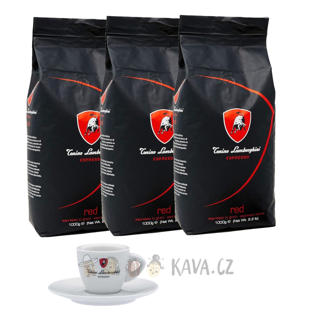 TONINO LAMBORGHINI Caffe Red 3 kg + Bílý šálek na kapučíno